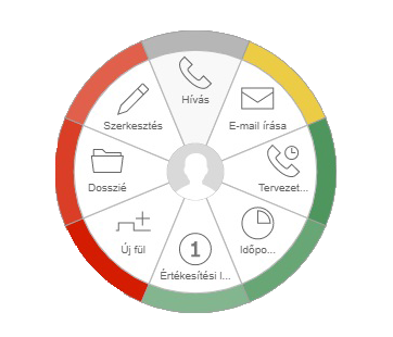 A válasz egyértelműen: NEM. Egy jó CRM megoldást bármilyen digitális analfabéta tud használni kortól függetlenül. Egy minőségi rendszer nagy hangsúlyt fektet a UX (user experience), vagyis a felhasználói élményre, ami nem csak a dizájnban, hanem a könnyű kezelhetőségben is megmutatkozik. Ilyen UX például a képen látható gyors radiál menü, ami egy kattintásra elérhető a CRM rendszerben.